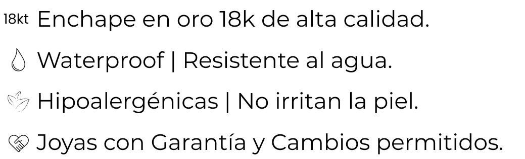 - Enchapado en oro de 18K PVD con hasta 10 micras de grosor, un proceso superior al baño en oro tradicional, que mantiene el color y brillo por mucho más tiempo.
